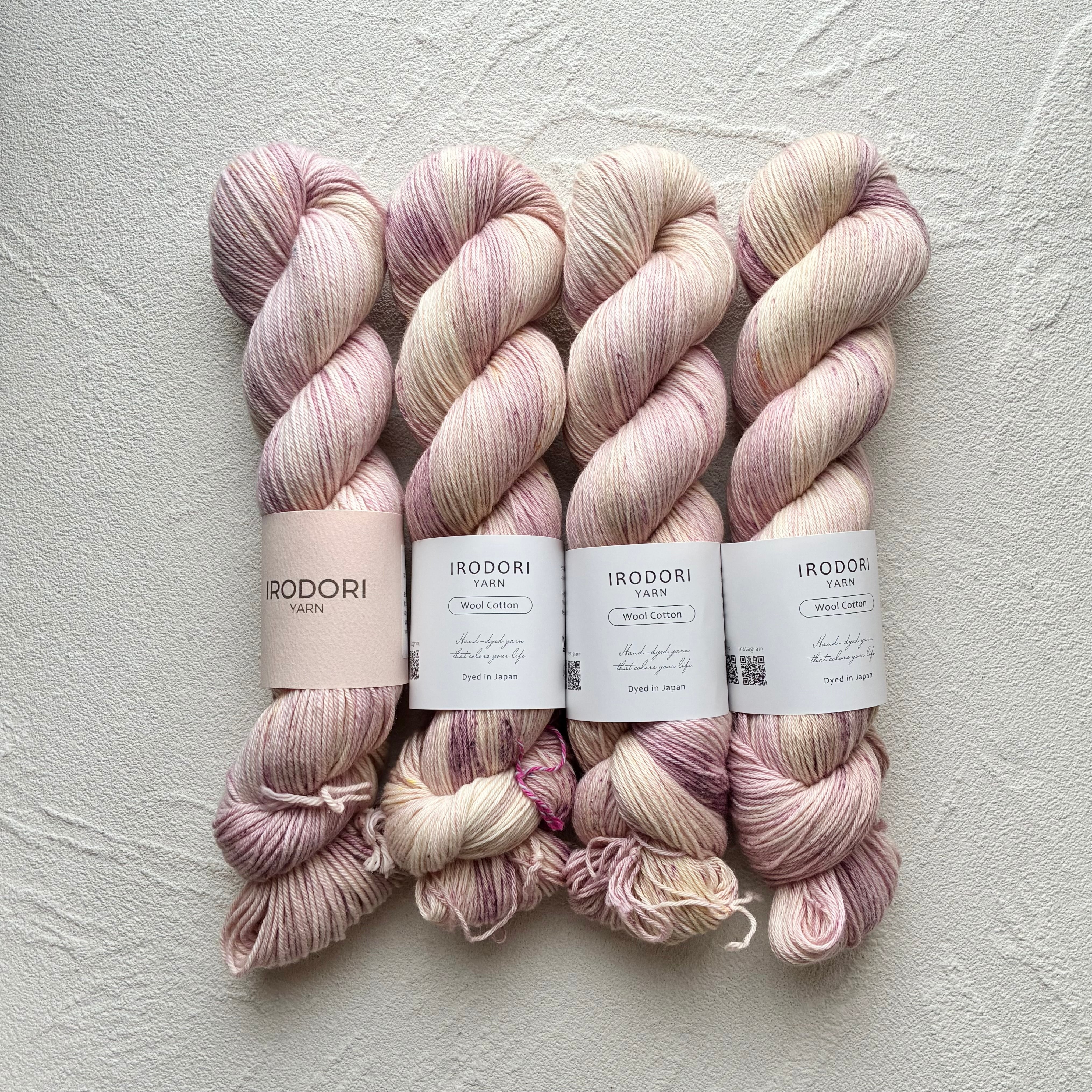 ・全て手作業で染めておりますので、必ず個体差が生じます。個性としてお楽しみいただけると幸いです。複数カセご使用いただく場合は、交互に編んだり、引き揃えで編むことをお勧めしております。