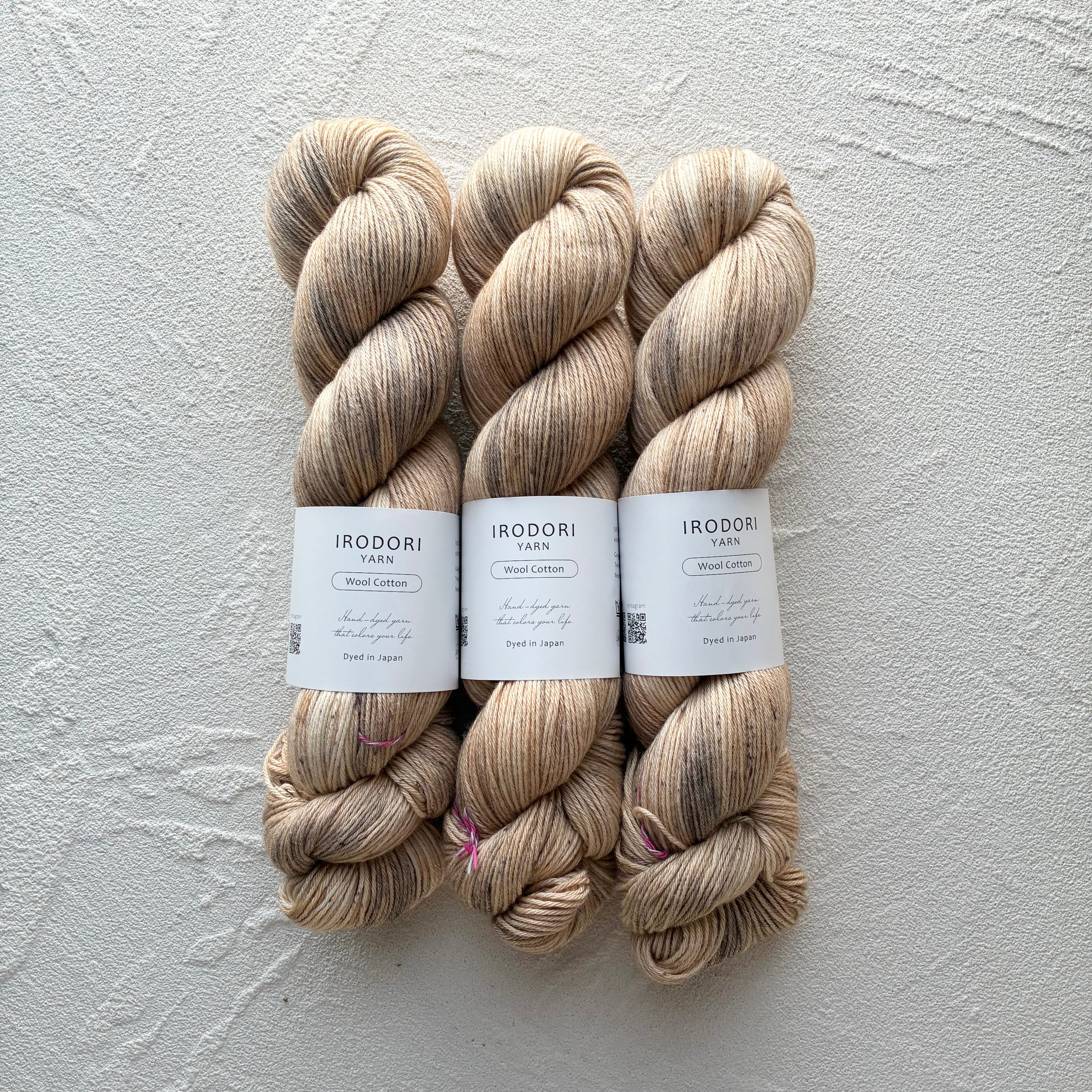 ・全て手作業で染めておりますので、必ず個体差が生じます。個性としてお楽しみいただけると幸いです。複数カセご使用いただく場合は、交互に編んだり、引き揃えで編むことをお勧めしております。